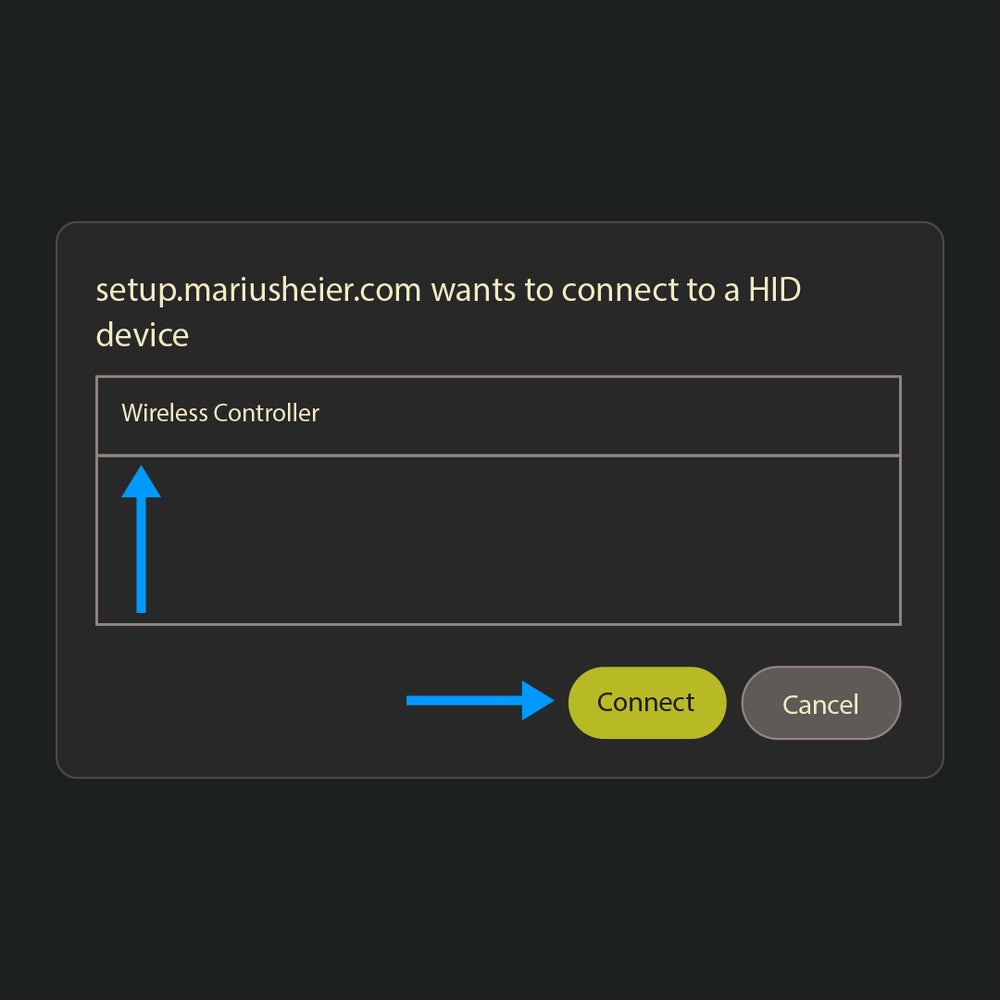 This will put the controller into setup mode and you will know you did it correctly if the LED color gradually changes between red, white, and blue.