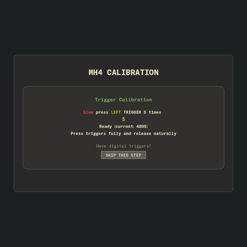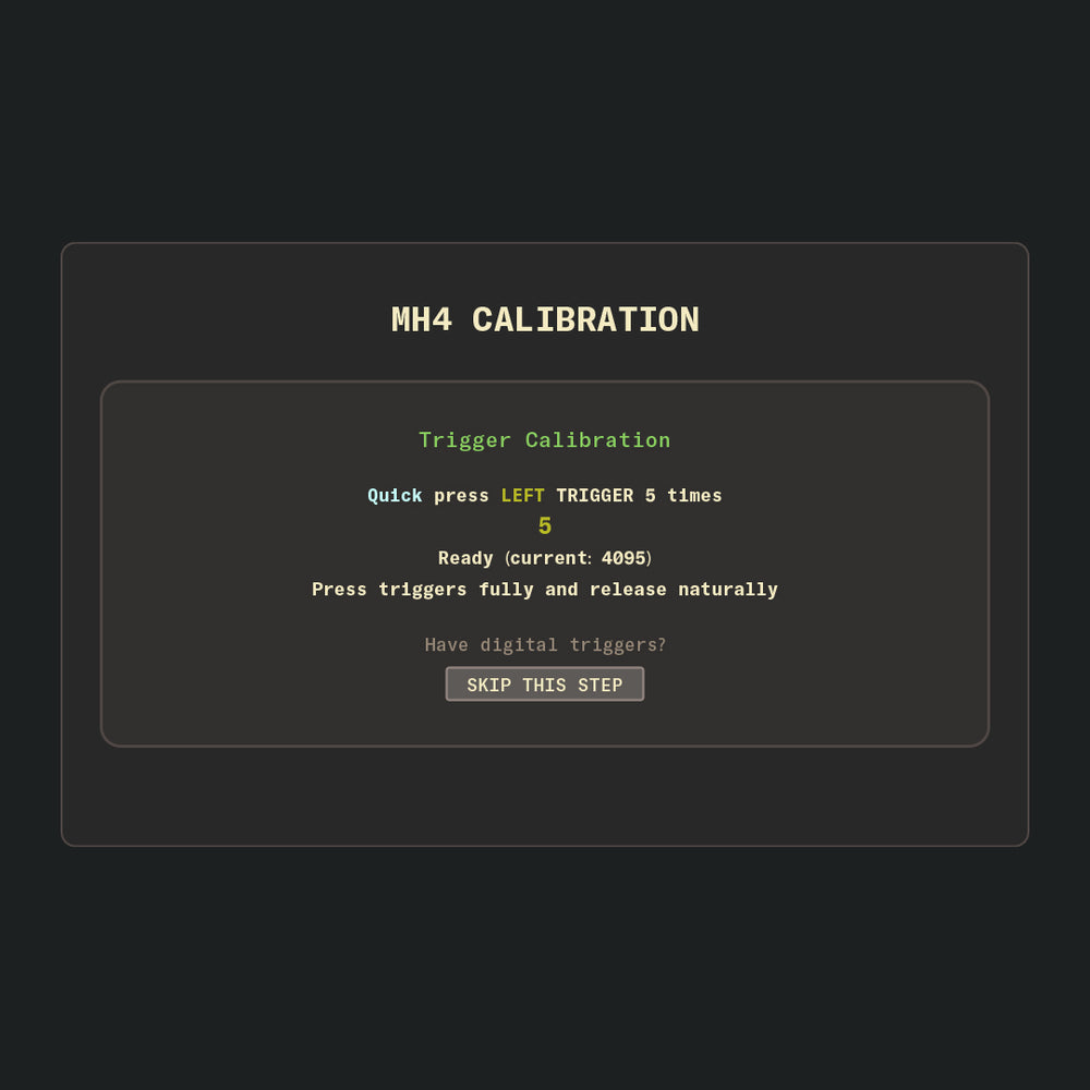 Next is the trigger calibration. Simply follow the instructions on the screen as it will first tell you to click the left trigger quickly first.