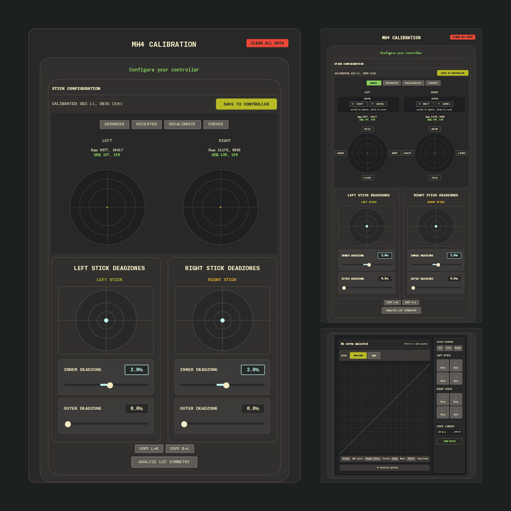 In this menu you can see where your joysticks rest and modify your deadzones, manually center your joysticks, or adjust your joystick curves.