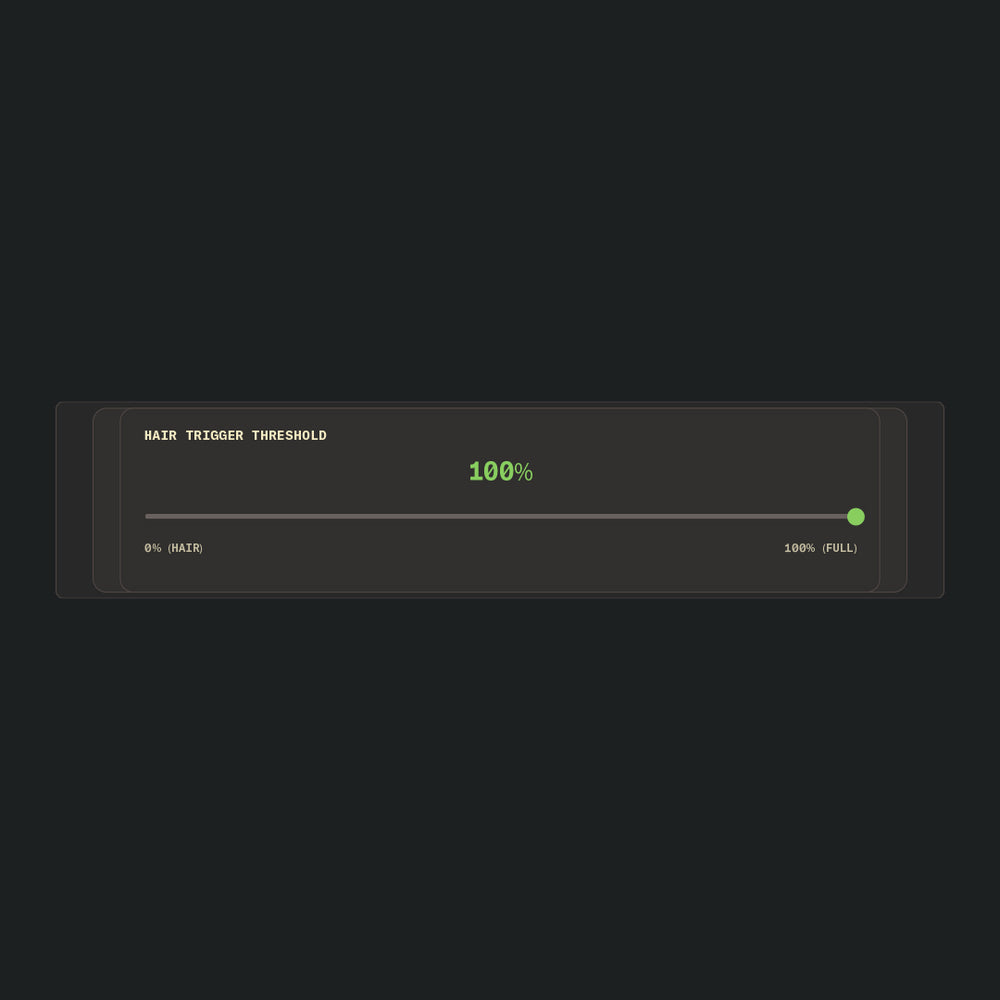 Hair Trigger: 100% - This slider doesn't behave as expected, so we set it to 100% to effectively disable it.