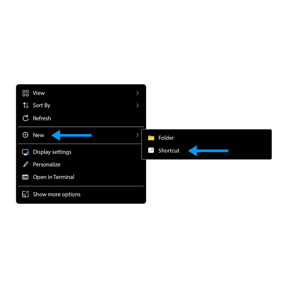 Go to your Desktop. Right-click and select "New," followed by "Shortcut."
