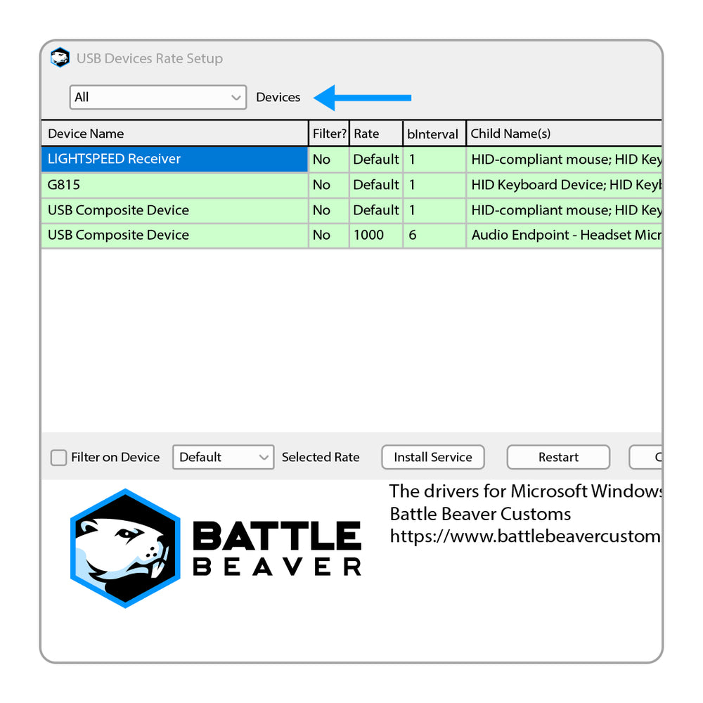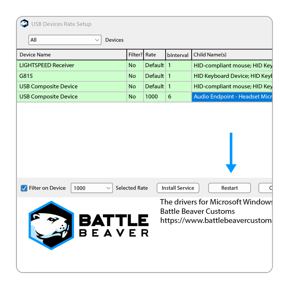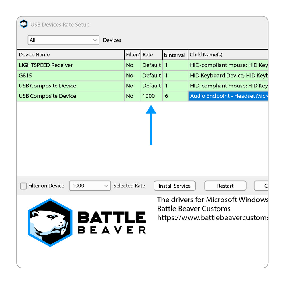 If successful, you should see either a progress bar or a screen flash letting you know the program is flashing the driver. Once complete, the Polling Rate under the "Rate" column should now match your selection.
