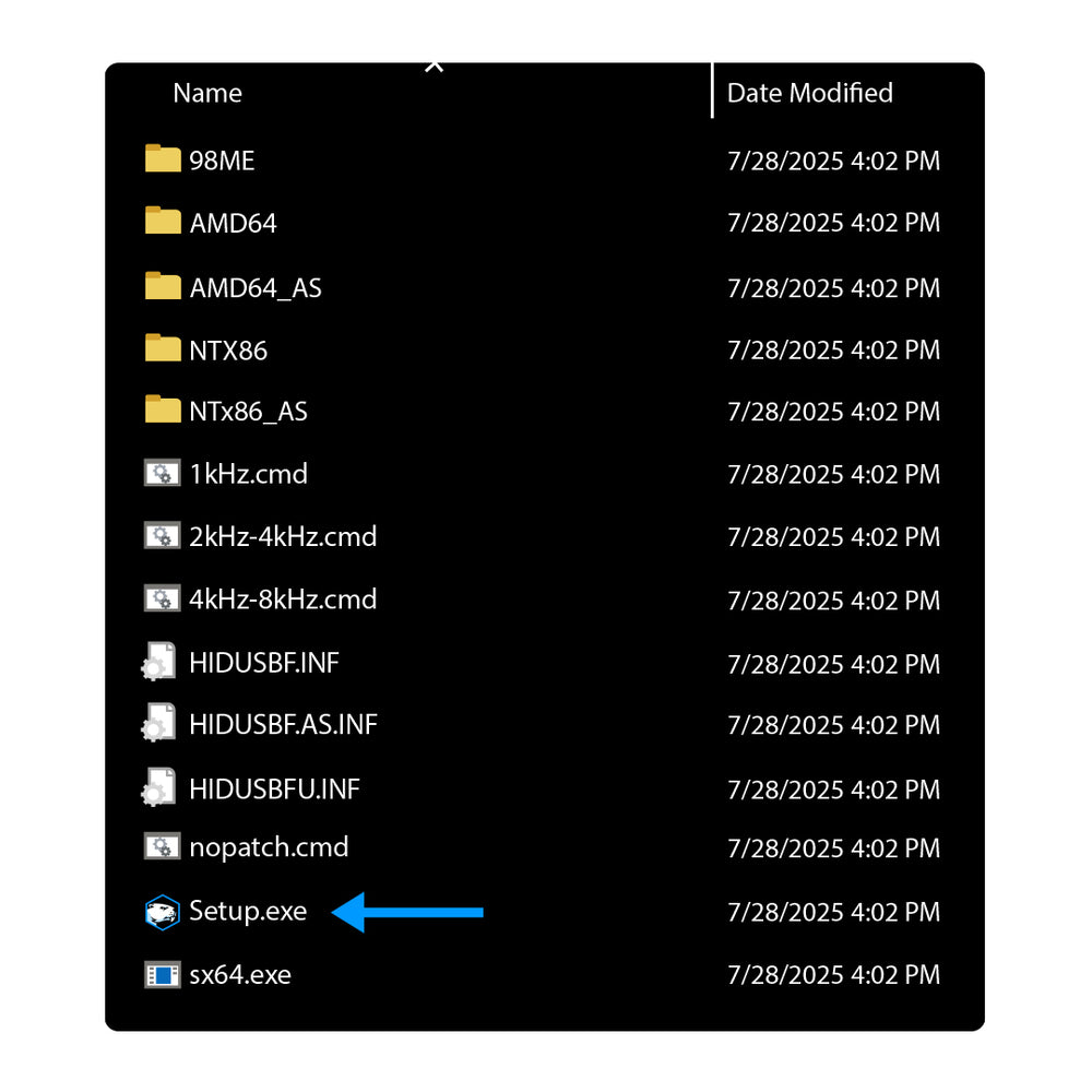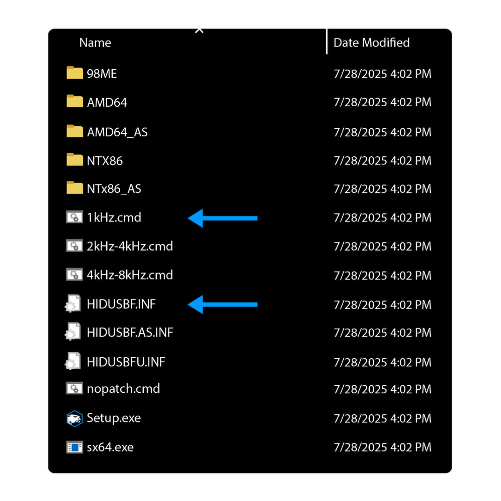 A common Windows 11 fix is to right-click the "HIDUSBF_AS" file, then click "Install" to manually load it for the first time. Try this also with the "1kHz.cmd" file by right-clicking it and choosing "Run as Administrator." Those two steps resolved any issues we had.